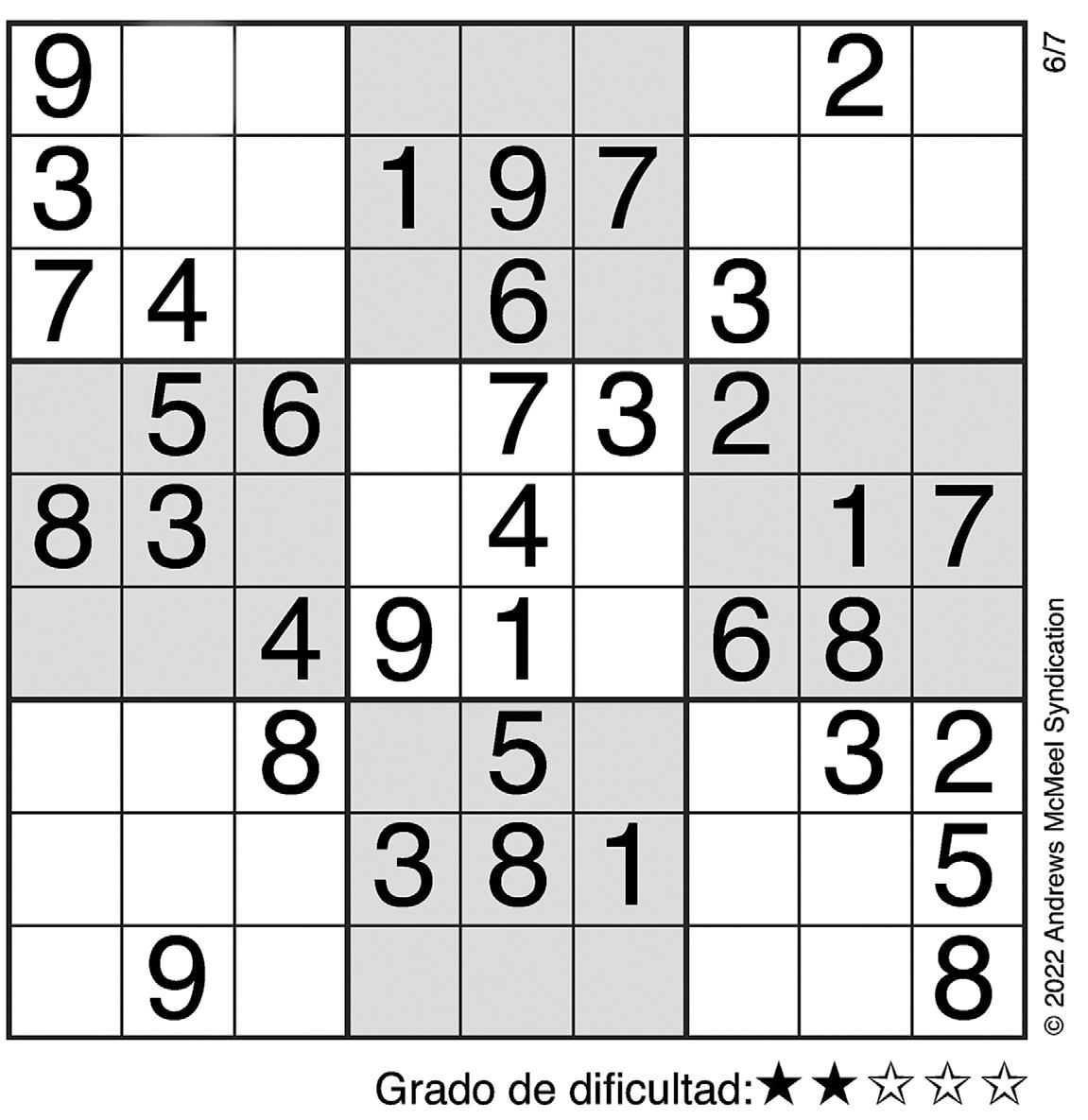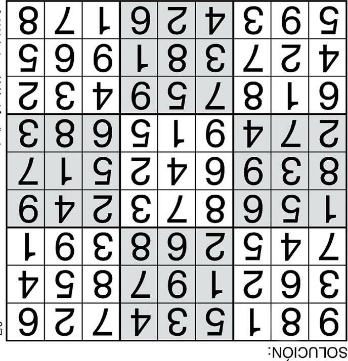 EUGENIA LASTHORÓSCOPOS eugenialast.com Complete el recuadro de tal manera que cada fila, columna y cuadro de 3x3 tengan los números del 1 al 9.