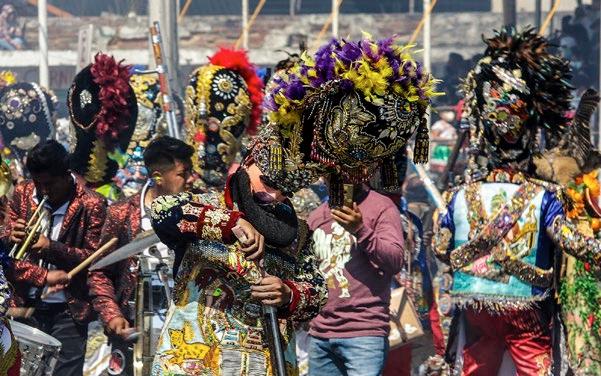 FIESTA. Huehues, colores y pólvora, al paso de los contingentes.