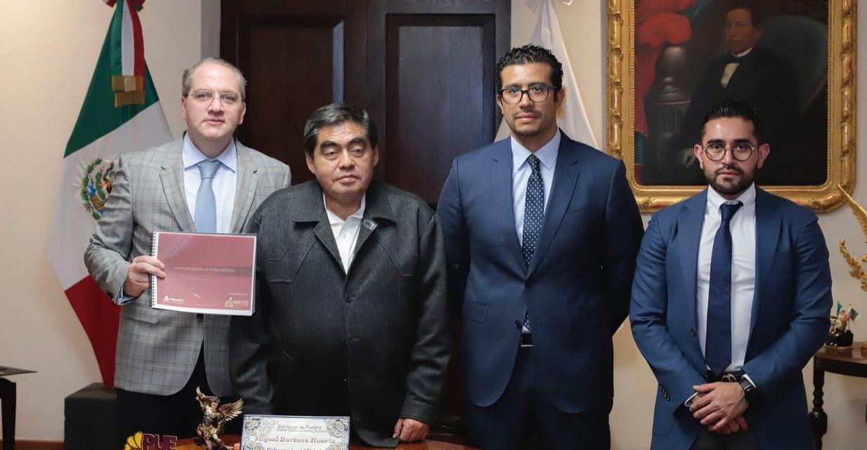 El gobernador Miguel Barbosa se reunió en Casa Aguayo con el director de Pemex Logística, Javier Emiliano González del Villar. La junta fue anunciada durante la conferencia matutina del miércoles. En el encuentro, el mandatario y el funcionario federal entablaron diálogo sobre reportes de robo de combustible en el estado de Puebla. En el pasado, el mandatario ha mencio nado que aunque es un delito de competencia federal, su gobierno actúa para detener a las ban das dedicadas a este robo y que operan en todo el territorio poblano. / STAFF Se reúnen Barbosa y el titular de Pemex Logística