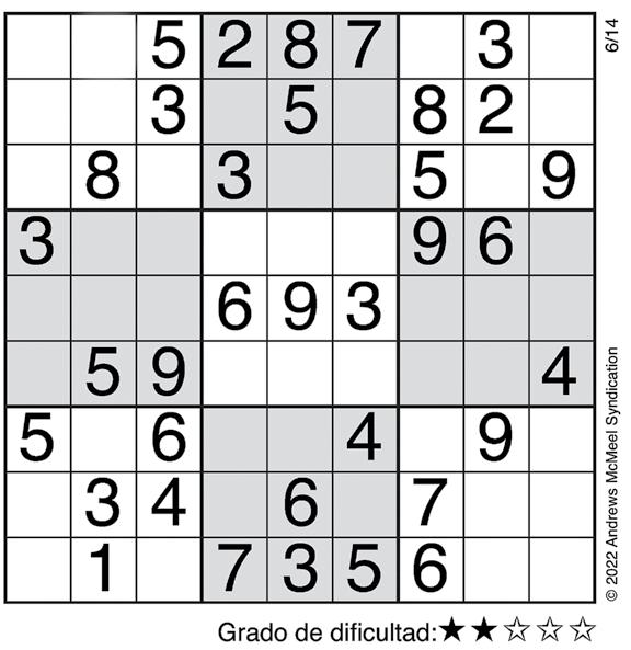 eugenialast.com Complete el recuadro de tal manera que cada fila, columna y cuadro de 3x3 tengan los números del 1 al 9. SUDOKU cual no le dio continuidad. Sergio comenta que Natalia esta ba casada cuando inició el romance con su hijo y no se había divorcia do, de hecho seguía viviendo con suNataliamarido.declaró que está deprimida y por eso no lleva a la niña a la escue la. Pero como ya no le dieron lo que quería, emprenderá acciones legales. Anette Michel es parte del elenco