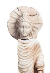 Data de la era romana y representa a Buda con un manto, desprovisto de sus extremidades derechas, y con un halo rodeando su cabeza, en referencia a los rayos del sol, según la foto difundida por el ministerio.