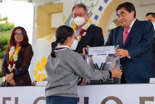 APOYO. Millones de alumnos de educación escolar.arranqueyuniformes,HuertaMiguelgobernadorenpresenciales;aregresaronbásicaclasesPuebla,elBarbosaentrególibroscuadernoseneldelciclo compromiso de fomentar la igualdad entre hombres y mujeres”, declaró. Por su parte, el gobernador poblano, Mi guel Barbosa, entregó uniformes y cuadernos a los adolescentes de la secundaria “General Emiliano Zapata”, en Huaquechula”. Quienes no pudieron “volver a la nueva normalidad” fueron los estudiantes y maes tros del Centro de Atención Múltiple (CAM) en Acapulco, Guerrero, porque sus planteles fueron saqueados en el confinamiento y aho ra tienen que tomar clases en los pasillos de losEninmuebles.Querétaro, seis planteles no reabrieron sus puertas porque no se han concluido las obras de rehabilitación.