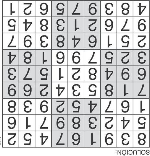 CRUCIGRAMA SUDOKU Complete el recuadro de tal manera que cada fila, columna y cuadro de 3x3 tengan los números del 1 al 9.