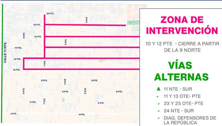 La capital. Cierran cruceros de la 9 Norte con la 10 y 12 Poniente por obras de mantenimiento