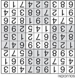 Complete el recuadro de tal manera que cada fila, columna y cuadro de 3x3 tengan los números del 1 al 9.