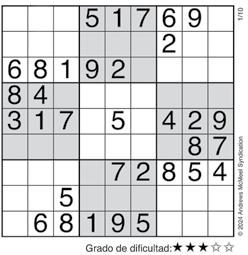 Complete el recuadro de tal manera que cada fila, columna y cuadro de 3x3 tengan los números del 1 al 9.