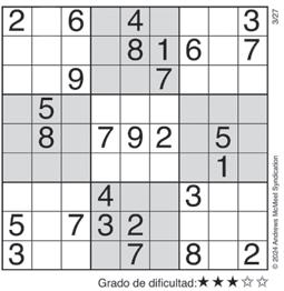 Complete el recuadro de tal manera que cada fila, columna y cuadro de 3x3 tengan los números del 1 al 9.