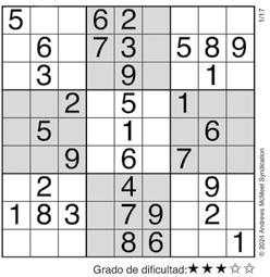 Complete el recuadro de tal manera que cada fila, columna y cuadro de 3x3 tengan los números del 1 al 9.