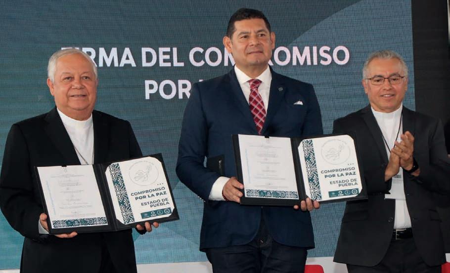 Alejandro Armenta, candidato a la gubernatura por la coalición Sigamos Haciendo Historia, signó el Compromiso por la Paz de la Red Estatal por la Paz, en un acto en el que estuvo presente el arzobispo Víctor Sánchez Espinosa LOCAL P. 3