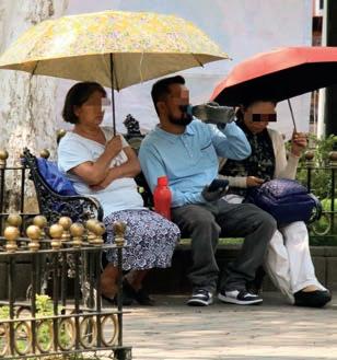Ante la ola de calor que ha dejado registros históricos en la ciudad, los capitalinos salen de sus casas equipados con gorras y sombrillas, en tanto que, a medio día, se saturan los espacios con sombra en la vía pública. Prácticamente los parklets, paraderos de autobuses y bancas del Zócalo se han vuelto espacios VIP LOCAL P. 7