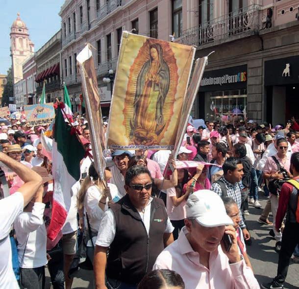Las y los participantes gritaron consignas como “Lalo gobernador”, “Xóchitl presidenta” y “Fuera Morena”. En cartulinas, cartones y lonas se leyeron los mensajes: “Por la democracia, justicia y libertad”, “AMLO es un traidor”, “No nos van a callar, vota”, “Si salimos a votar Xóchitl ganará”, “La garantía de un país para todos es la democracia” y