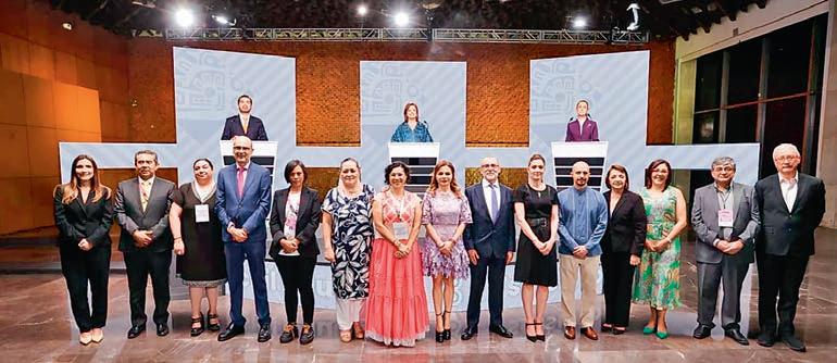 Méndez Hernández, de la asociación de huehues; Grace Palomares; Jaime Natale; Michel Talavera; Maricela Rocete; Carlos Gómez; Marisol Amieva y Mario José Farfán Ortega, de arte rupestre.