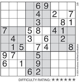 Complete el recuadro de tal manera que cada fila, columna y cuadro de 3x3 tengan los números del 1 al 9.