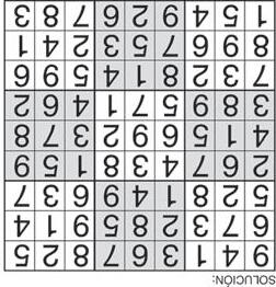Complete el recuadro de tal manera que cada fila, columna y cuadro de 3x3 tengan los números del 1 al 9.