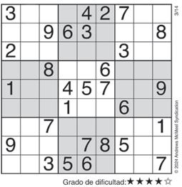 Complete el recuadro de tal manera que cada fila, columna y cuadro de 3x3 tengan los números del 1 al 9.