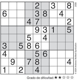 Complete el recuadro de tal manera que cada fila, columna y cuadro de 3x3 tengan los números del 1 al 9.
