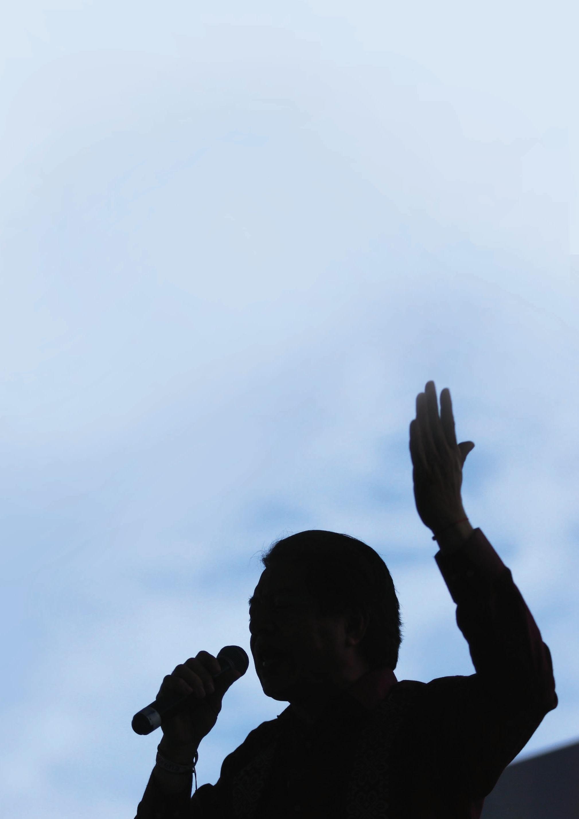 “La transformación continuará con su apoyo”, resaltó ante decenas de personas durante un mitin.