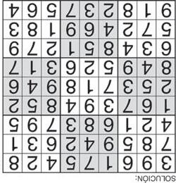 Complete el recuadro de tal manera que cada fila, columna y cuadro de 3x3 tengan los números del 1 al 9.