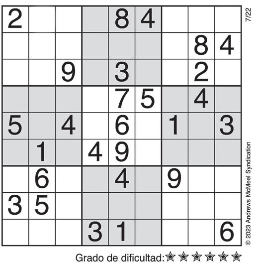 CRUCIGRAMA SUDOKU Complete el recuadro de tal manera que cada fila, columna y cuadro de 3x3 tengan los números del 1 al 9.