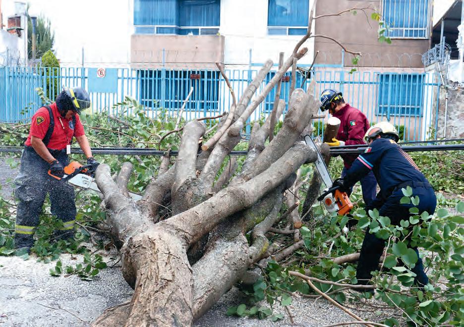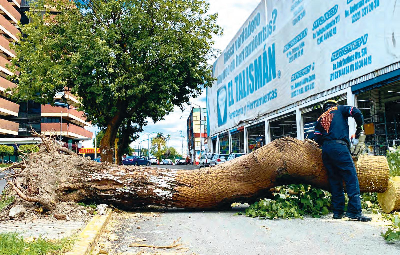 RÁFAGAS. Los intensos vientos registrados este miércoles en la ciudad de Puebla ocasionaron la caída de varios árboles, como este ejemplar desplomado en la Diagonal Defensores de la República y la avenida Reforma Sur, donde fue retirado por personal de Protección Civil LOCAL P. 5