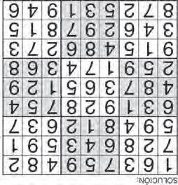 Complete el recuadro de tal manera que cada fila, columna y cuadro de 3x3 tengan los números del 1 al 9.