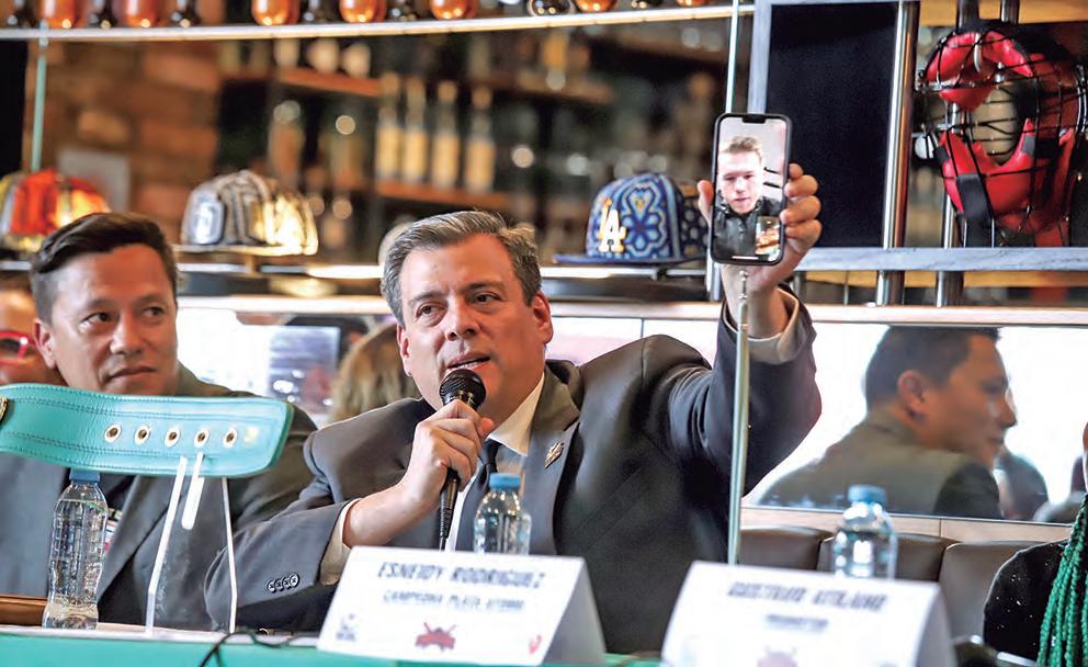 CANELO PROMETE ACABARLO ANTES DEL OCTAVO ROUND Tras finalizar su entrenamiento matutino y al responder una llamada personal con Mauricio Sulaimán, Saúl Álvarez aseguró que ante Berlanga la idea es poder acabar el encuentro antes de concluir el octavo asalto. “Me siento muy honrado de poder representar a mi país en una