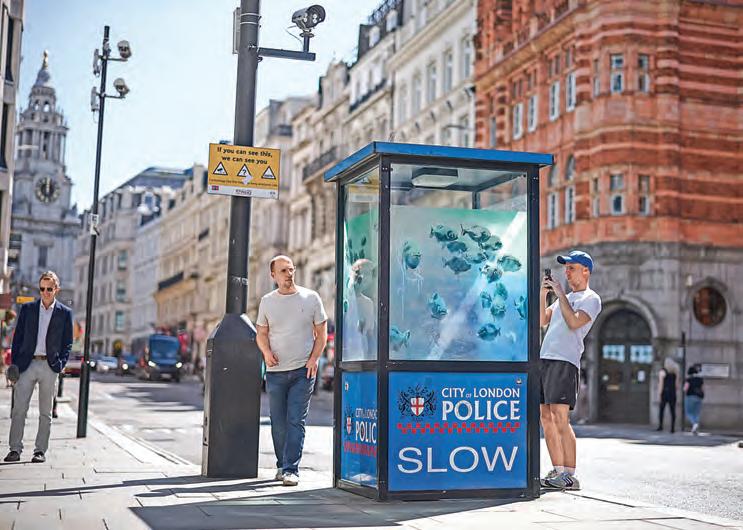 El jueves un lobo aullando en una antena parabólica sobre una tienda en Peckham y el viernes pelícanos comiendo peces en-