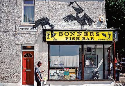 cima de un puesto de “fish and chips” en Walthamstow.
