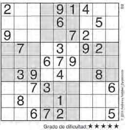 Complete el recuadro de tal manera que cada fila, columna y cuadro de 3x3 tengan los números del 1 al 9.