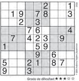Complete el recuadro de tal manera que cada fila, columna y cuadro de 3x3 tengan los números del 1 al 9.