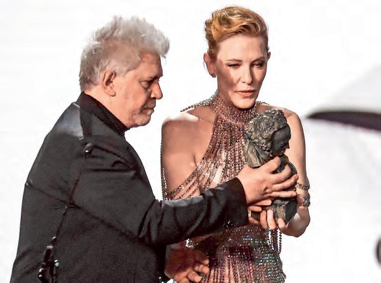 de Cine Europeo, cinco Bafta, cuatro César, cinco Goyas y dos David de Donatello, y ha sido galardonado en los festivales de Cannes, Berlín, Venecia y San Sebastián. Curiosamente, fue Almodóvar quien entregó sus premios Donostia a Al Pacino, Woody Allen y Antonio Banderas. Nacido en Calzada de Calatrava, España, Pedro Almodóvar ha configurado su carrera