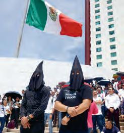 Encapuchados, como si fueran juzgados por la Inquisición, trabajadores protestaron afuera de la Ciudad Judicial en contra de la reforma impulsada por AMLO LOCAL P. 5