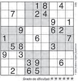 Complete el recuadro de tal manera que cada fila, columna y cuadro de 3x3 tengan los números del 1 al 9.