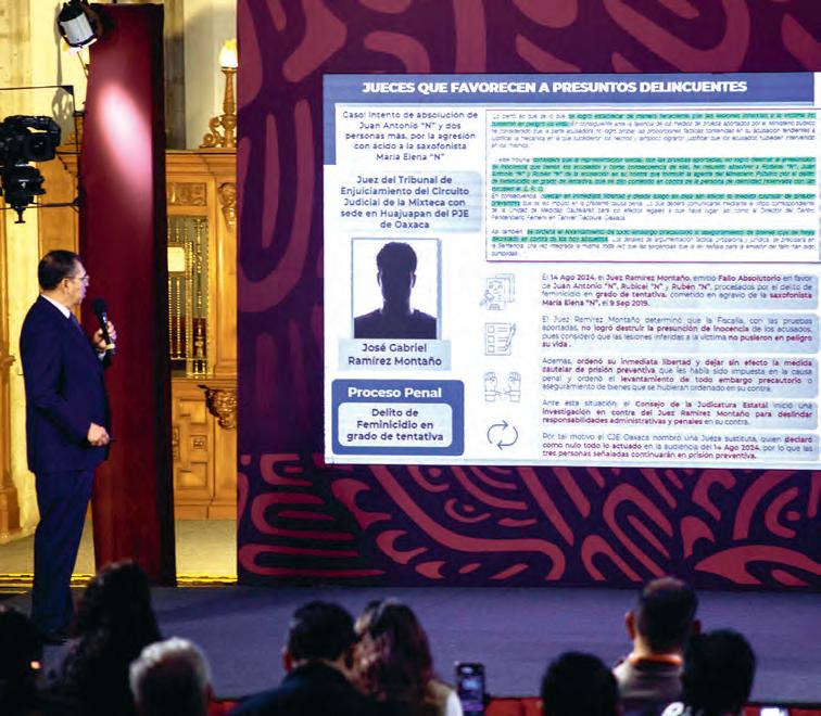 En su conferencia mañanera de este martes, el mandatario federal y el subsecretario de la Secretaría de Seguridad, Luis Rodríguez Bucio, exhibieron a dos juezas que otorgaron la prisión domiciliaria al exgobernador de Puebla, acusado del delito de tortura en contra de la periodista Lydia Cacho. Para el presidente, esta decisión es un ejemplo de ‘la corrupción’ que impera en el Poder Judicial Federal, a cuyos integrantes acusó de actuar en contubernio con políticos LOCAL P. 3