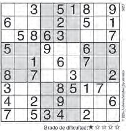Complete el recuadro de tal manera que cada fila, columna y cuadro de 3x3 tengan los números del 1 al 9.