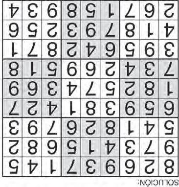 Complete el recuadro de tal manera que cada fila, columna y cuadro de 3x3 tengan los números del 1 al 9.