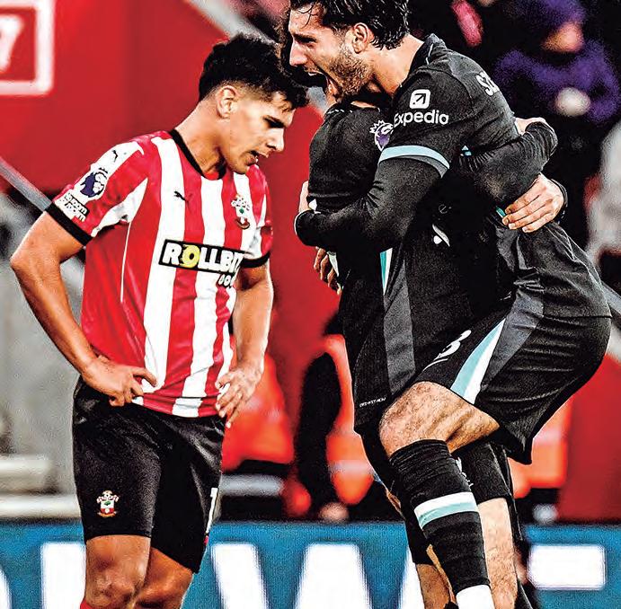 Más allá de haberse adelantado en el encuentro con un tanto de Dominik Szoboszlai, durante la primera mitad, el equipo dirigido por Arne Slot tuvo que remontar el partido al cierre del mismo, tras la oportuna reacción que mostraron los Saints con los tantos de Adam Armstrong y Mateus Fernandes al cierre de la primera mitad y el inicio del complemento.