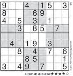 Complete el recuadro de tal manera que cada fila, columna y cuadro de 3x3 tengan los números del 1 al 9.