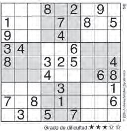 Complete el recuadro de tal manera que cada fila, columna y cuadro de 3x3 tengan los números del 1 al 9.