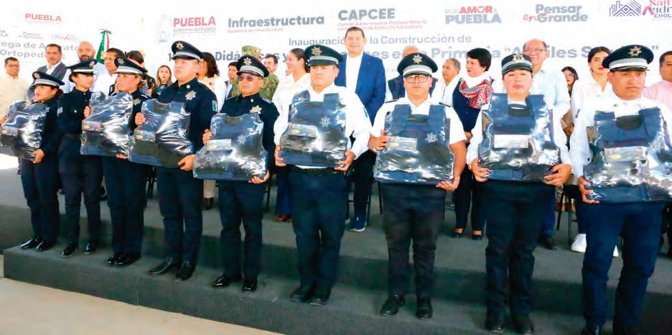 ESTRATEGIA. Este jueves, Alejandro Armenta Mier entregó 65 paquetes destinados a elementos de la Policía Municipal de San Andrés Cholula.