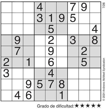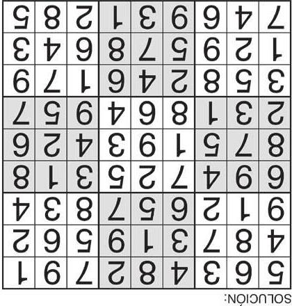 Complete el recuadro de tal manera que cada fila, columna y cuadro de 3x3 tengan los números del 1 al 9.