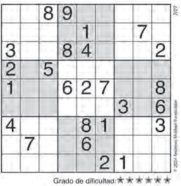 Complete el recuadro de tal manera que cada fila, columna y cuadro de 3x3 tengan los números del 1 al 9.