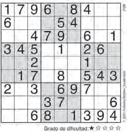 Complete el recuadro de tal manera que cada fila, columna y cuadro de 3x3 tengan los números del 1 al 9.