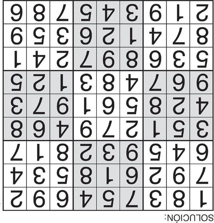 Complete el recuadro de tal manera que cada fila, columna y cuadro de 3x3 tengan los números del 1 al 9.
