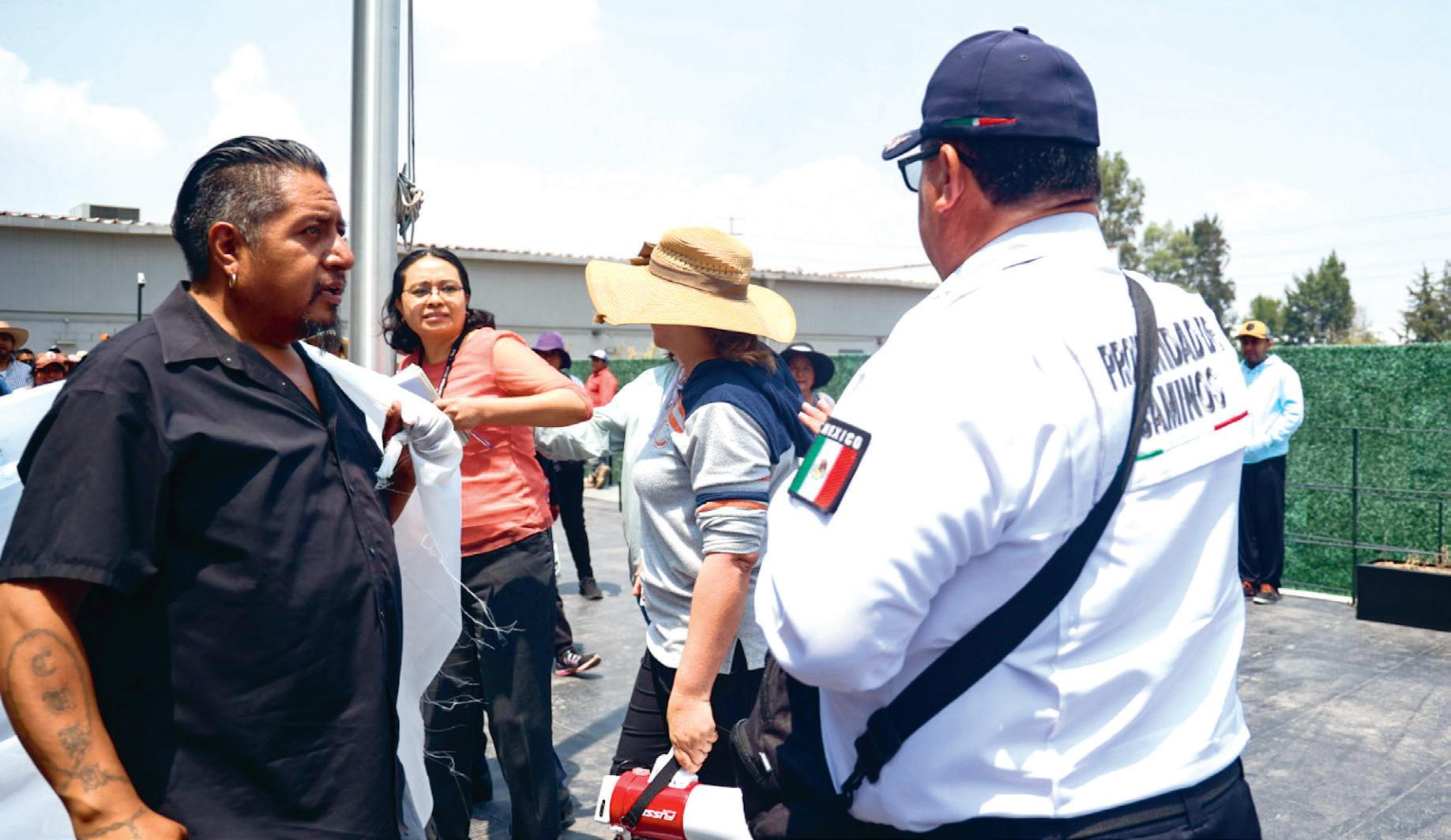 Después de una hora, al sitio llegaron elementos de la Secretaría de Seguridad Pública estatal, quienes se enfrentaron a jaloneos y agresiones verbales con los manifestantes, motivo por el cual los ánimos subieron de tono.