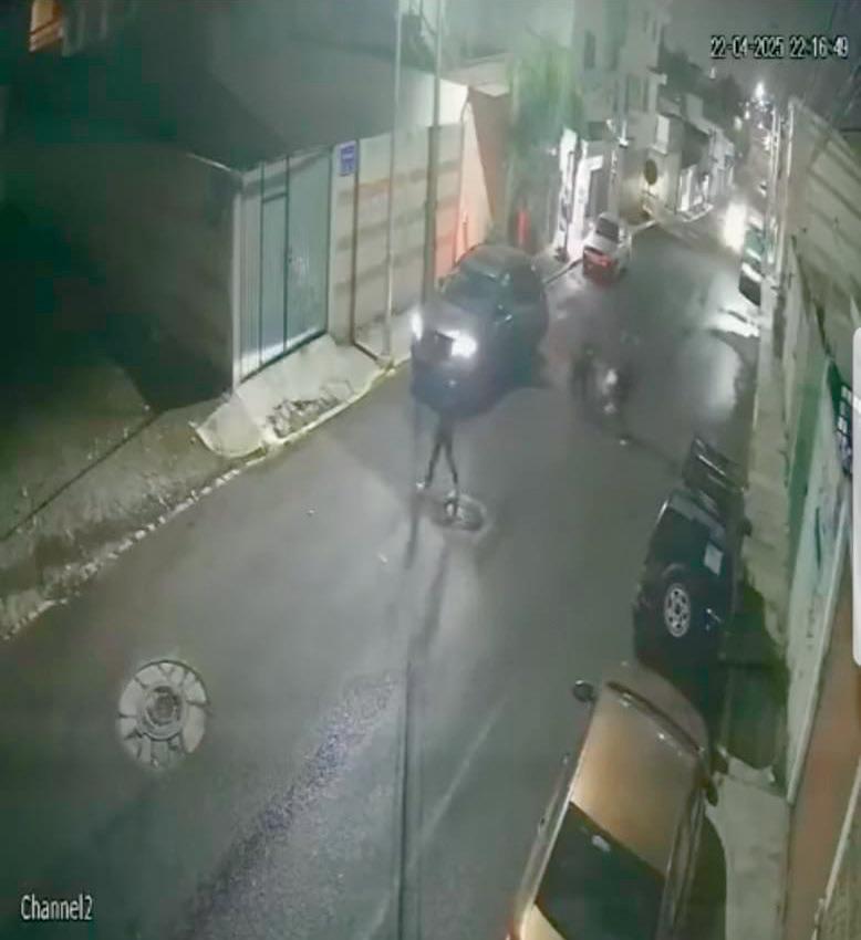 En la grabación se observa que a las 22:17 horas una mujer conversaba con otra persona cuando un sujeto pasó cerca de ellas y continuó su camino. Metros atrás, otro hombre caminaba en la misma dirección.