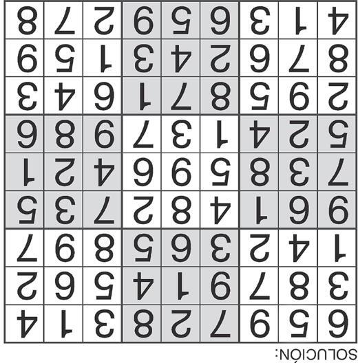 Complete el recuadro de tal manera que cada fila, columna y cuadro de 3x3 tengan los números del 1 al 9.
