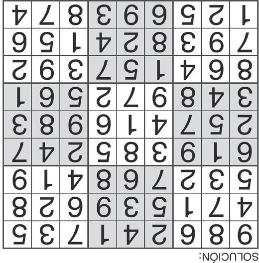 Complete el recuadro de tal manera que cada fila, columna y cuadro de 3x3 tengan los números del 1 al 9.
