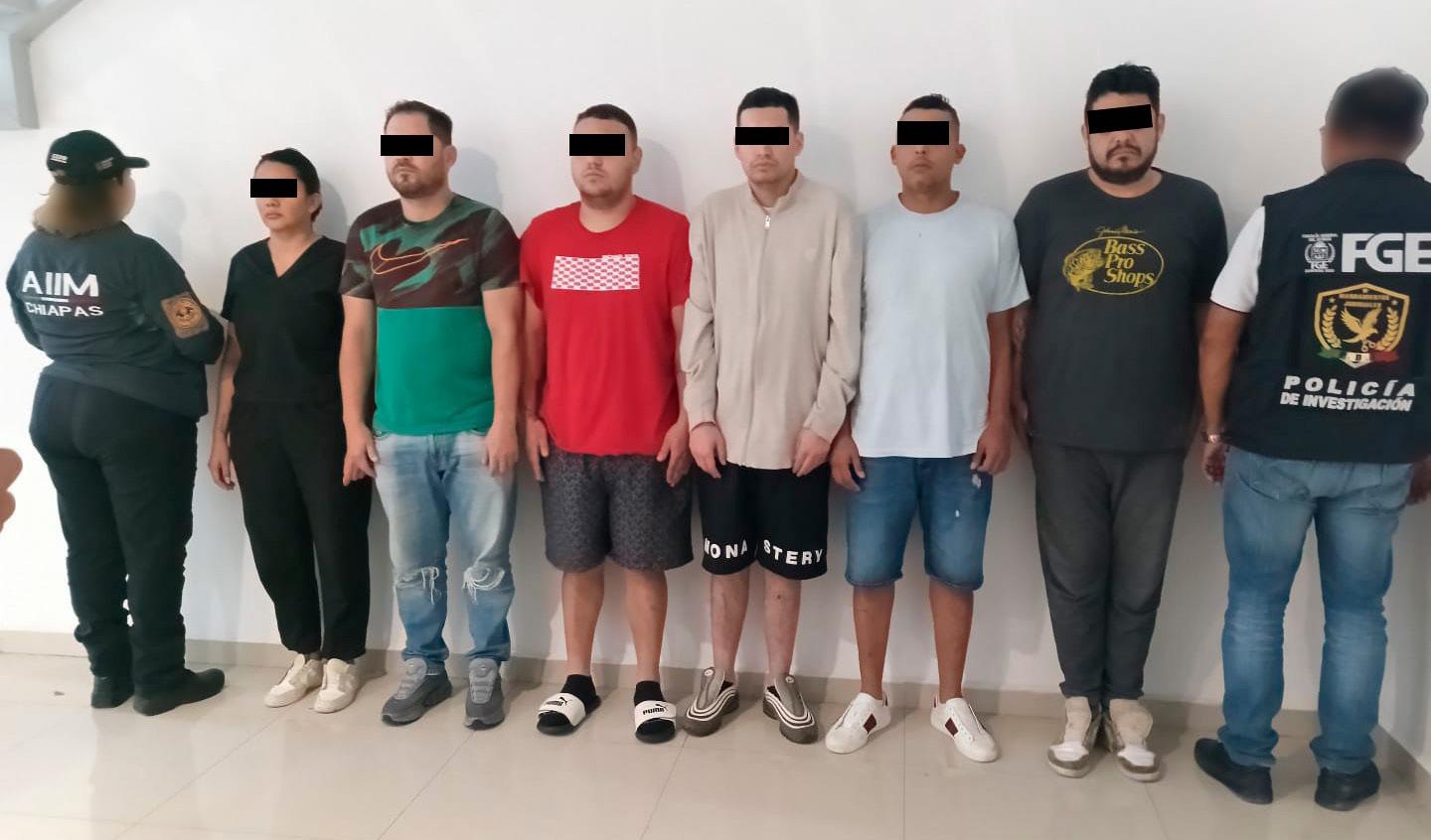 DETENIDOS. Las seis personas fueron entregadas a agentes de la Fiscalía General del Estado de Chiapas, quienes realizaron su traslado a esa entidad.