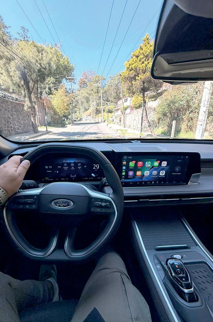 El interior combina materiales de buena calidad con una ergonomía bien pensada. El sistema de infoentretenimiento es intuitivo y compatible con Apple Car Play y Android Auto inalámbricos, lo cual facilita conectividad sin cables.